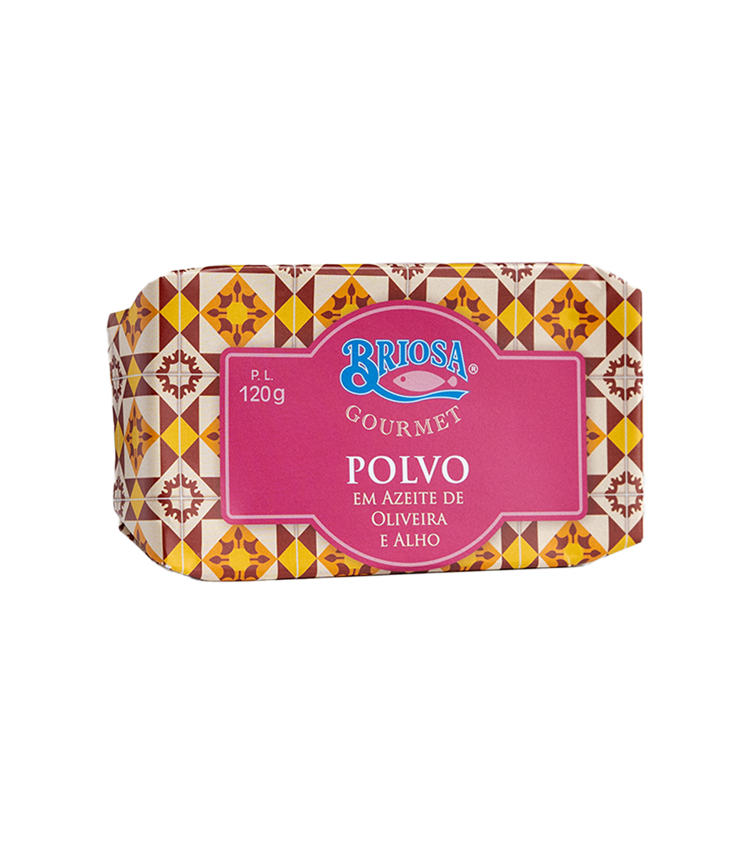 Produzido na Figueira da Foz pela Briosa, este polvo tenro mergulhado em azeite de qualidade e alho aromático é puro requinte em lata. Um petisco nobre, ideal para partilhar em momentos especiais.